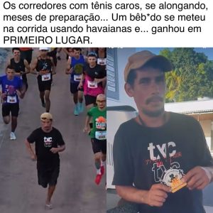 Sem inscrição oficial, Isaque decidiu, no improviso, se juntar aos corredores durante uma prova de rua. Mesmo sem preparo físico, sem tênis adequado e com o “combustível errado” no corpo, ele surpreendeu: disparou na largada, chegou a liderar o percurso e cruzou a linha de chegada antes de muitos atletas treinados, conquistando uma medalha de participação.